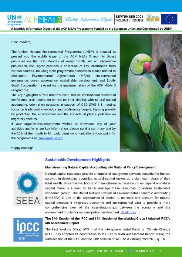 The key highlights of this month’s issue include international ministerial conference draft resolution on marine litter, dealing with natural capital accounting, orientation sessions in support of CBD OWG 3.1 meeting,focus on traditional knowledge and biodiversity targets, fighting poverty by protecting the environment and the impacts of plastic pollution on migratory species.
