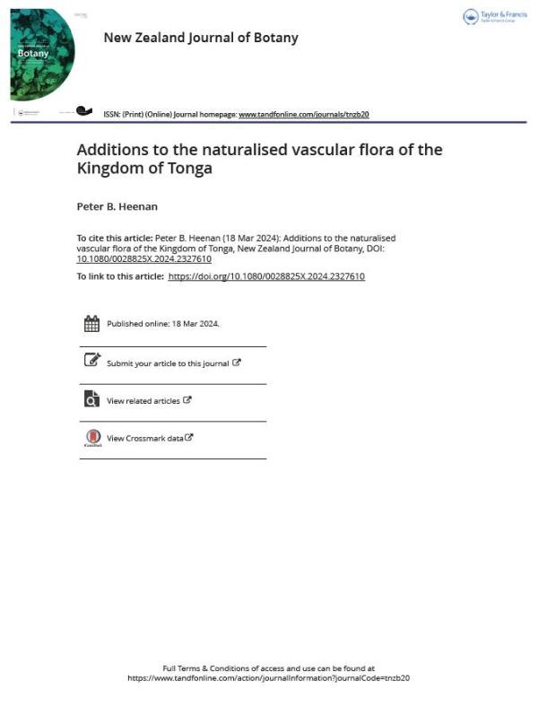 This paper is a further contribution to the naturalised flora of Tonga in documenting 19 species newly recognised from the archipelago. These 19 species are treated as the single broad category of naturalised whereby they form a wild population(s) self-maintained by seed or vegetative reproduction (following Webb et al. 1988).