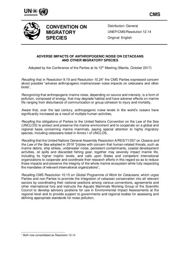 These CMS family guidelines on environmental impact assessment for marine noise-generating activities are designed to provide regulators with tailored advice to apply in domestic jurisdictions, as appropriate to create EIA standards between jurisdictions seeking to manage marine noise-generating activities.
