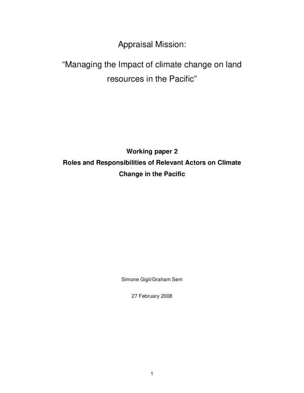 Roles and Responsibilities of Relevant Actors on Climate Change in the Pacific