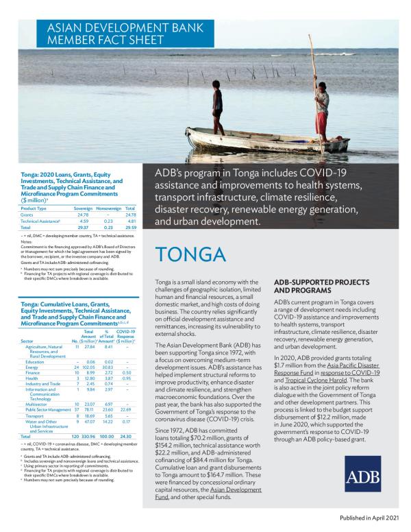 Tonga is a small island economy with the challenges of geographic isolation, limited human and financial resources a small domestic market, and high costs of doing business. The country relies significantly on official development assistance and remittances increasing its vulnerability to external shocks.