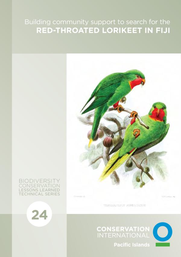 24 BIODIvERSITy COnSERvATIOn LESSONS LEARNED TECHNICAL SERIES Building community support to search for the Red-thRoated LoRikeet in Fiji Building community support to search for the Red-throated Lorikeet in Fiji BIODIVERSITY CONSERVATION LESSONS LEARNED TECHNICAL SERIES 24 Biodiversity Conservation Lessons Learned Technical Series is published by: Critical Ecosystem Partnership Fund (CEPF) and Conservation International Pacific Islands Program (CI-Pacific) PO Box 2035, Apia, Samoa T: + 685 21593 E: cipacific@conservation.org W: www.conservation.org The Critical Ecosystem Partnership Fund is a joint initiative of lâAgence Française de Développement, Conservation International, the Global Environment Facility, the Government of Japan, the MacArthur Foundation and the World Bank. A fundamental goal is to ensure civil society is engaged in biodiversity conservation. Conservation International Pacific Islands Program. 2013. Biodiversity Conservation Lessons Learned Technical Series 24: Build