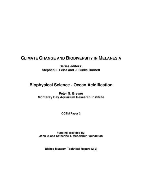 This paper is produced as part of the Climate Change and Biodiversity in Melanesia Project, funded by the John D. and Catherine T. MacArthur Foundation. The aim of this project is to assess the vulnerability of Melanesian marine and terrestrial ecosystems to projected climate changes. The CCBM Paper Series, listed below, are published as part of the larger Bishop Museum Technical Report Series.