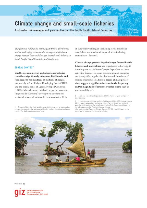 This factsheet outlines the main aspects from a global study and an underlying review on the management of climate change induces losses and damages in small-scale fisheries in South Pacific Island Countries and Territories.