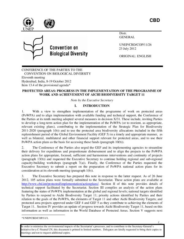With a view to strengthen implementation of the programme of work on protected areas (PoWPA) and to align implementation with available funding and technical support, the Conference of the Parties at its tenth meeting adopted several measures in decision X/31. These include, inviting Parties to develop a long-term action plan for the implementation of the PoWPA (or to reorient, as appropriate, relevant existing plans), contributing to the implementation of the Strategic Plan for Biodiversity 2011-2020 (paragraph 1(b)) and to use the protected area biodiversity allocations included in the fifth replenishment period of the Global Environment Facility (GEF 5) in a timely and appropriate manner, as well as bilateral, multilateral and other financial support relevant for protected areas, and to use their PoWPA action plans as the basis for accessing these funds (paragraph 10(b)).
