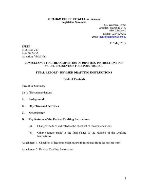 Drafting Instructions for a model law dealing with the regulation of uPOPS and related matters have been comprehensively reviewed with a view to modifying them to facilitate...