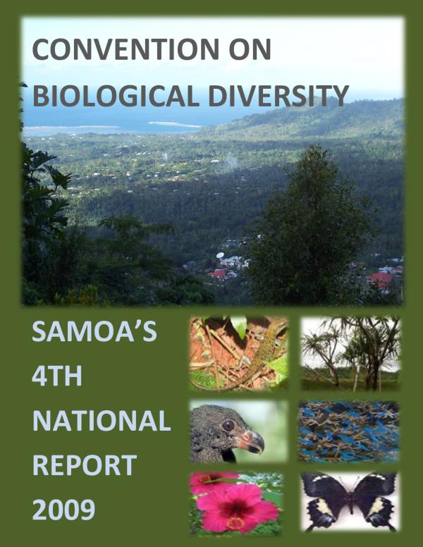 This fourth (4th) national report to the CBD documents the achievements, issues, lessons and future needs for Samoa in biological diversity conservation, consistent with the CBD reporting guidelines and building on previous national reports. Samoa continues to make solid progress in key areas, in the implementation of its obligations as a party to the Convention on Biological Diversity.