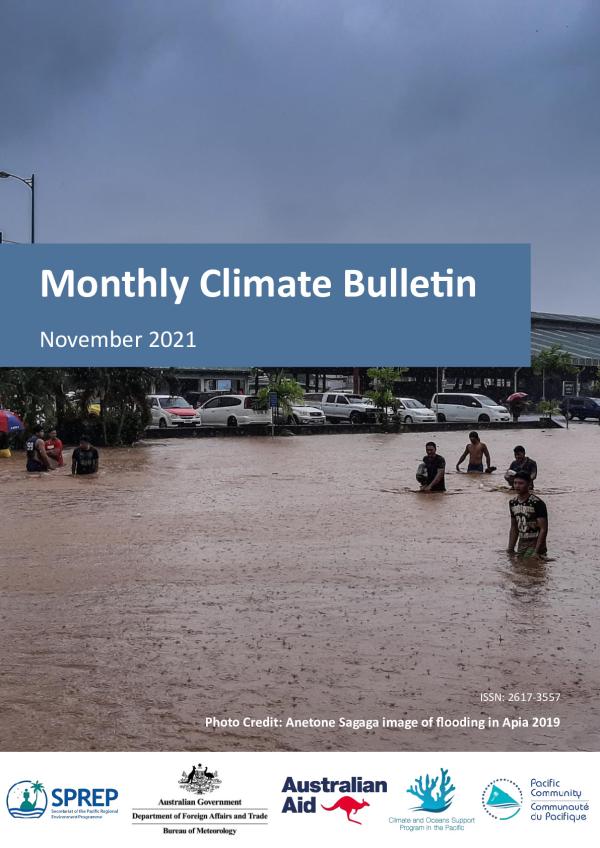 The sea surface temperature anomaly pattern in November shows SSTs were warmer than av-erage in the far western Pacific while cooler than average SSTs along the central and eastern equatorial Pacific Ocean. Coral bleaching status warning 'Alert Level 2' for parts of northern PNG mainland while 'Alert Level 1' for other parts of northern and southeast PNG, Palau and FSM. 'No stress' or 'watch' for the rest of COSPPac countries. Coral bleaching outlook remains at 'Alert Level 2' for north-ern and southern PNG for the next three weeks.