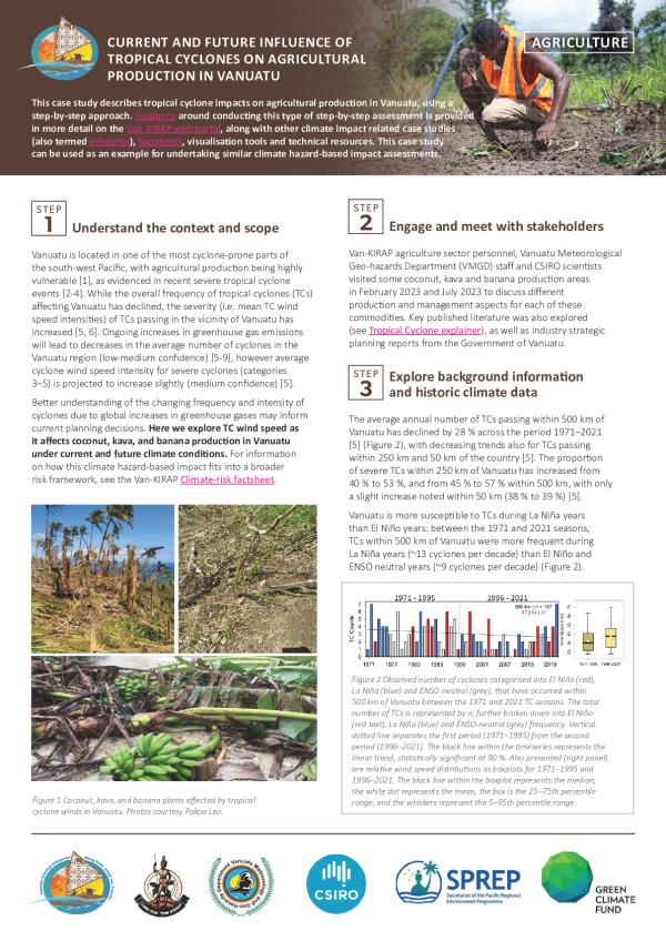 This case study describes tropical cyclone impacts on agricultural production in Vanuatu, using a step by step approach.