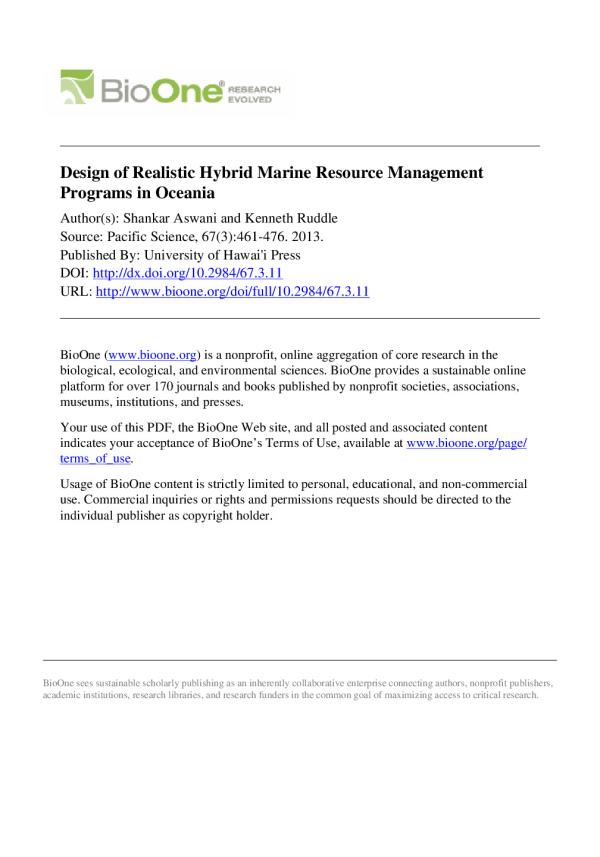 Marine reource - Management - Hybrid - Oceania