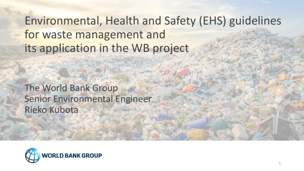 EHS guidelines on waste management and hazardous materials management specify the guidance all along the waste value chain from waste prevention, generation, separation, storage, collection, transportation, recycling, treatment and landfill. The guidelines provide the direction on how the WB projects should design the project activities and infrastructures and how to safely manage general and hazardous waste.