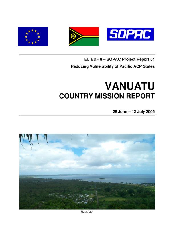 The objective of the visit to Port Vila was to assess and review planning processes, legislation, and institutional frameworks for institutionalising the integrated coastal management (ICM) planning process and mainstreaming ICM within the Government of Vanuatu national development process. This exercise is required to ensure that ICM is not a project activity only but is incorporated/mainstreamed into the existing planning processes in Vanuatu.