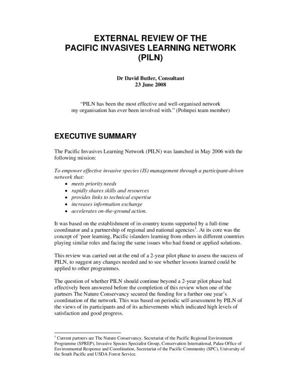 This support has taken various forms: bringing participants together for annual meetings, developing specific workshops to meet needs they had identified, passing around information, supporting learning exchanges and assisting with national planning. The result has been that most participants who responded to a survey felt that PILN had helped them carry out their invasive species work more successfully. Partner agency representatives all reported that they were very satisfied or satisfied with PILN. Flinders were also well pleased with the networks progress and several considered that future support might be possible.