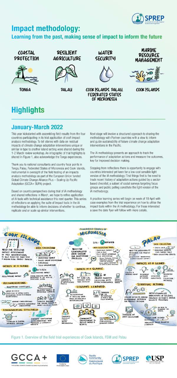 This yer kickstarted with assembling field results from the four countries participating in this trial application of draft impact analysis methodology. To tells stories with data on residual impacts of climate change adaptation interventions unique or similar type to another island setting were shared during the 1-2 March review workshop.