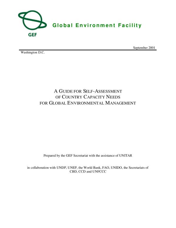 GEF support for the preparation of National Capacity Self-Assessments (NCSA) is pursuant to the GEF Council Decision which "requests the GEF Secretariat, in collaboration with the Implementing Agencies and Executing Agencies, to initiate processes so that the self-assessment of capacity building needs can begin immediately in countries that request such assistance". The overall aim of GEF support for the NCSA is to provide countries with the opportunity to take the lead in articulating their own capacity needs and priorities with respect to the global environment taking into account the three global conventions 011 biodiversity, climate change and desertification/land degradation"