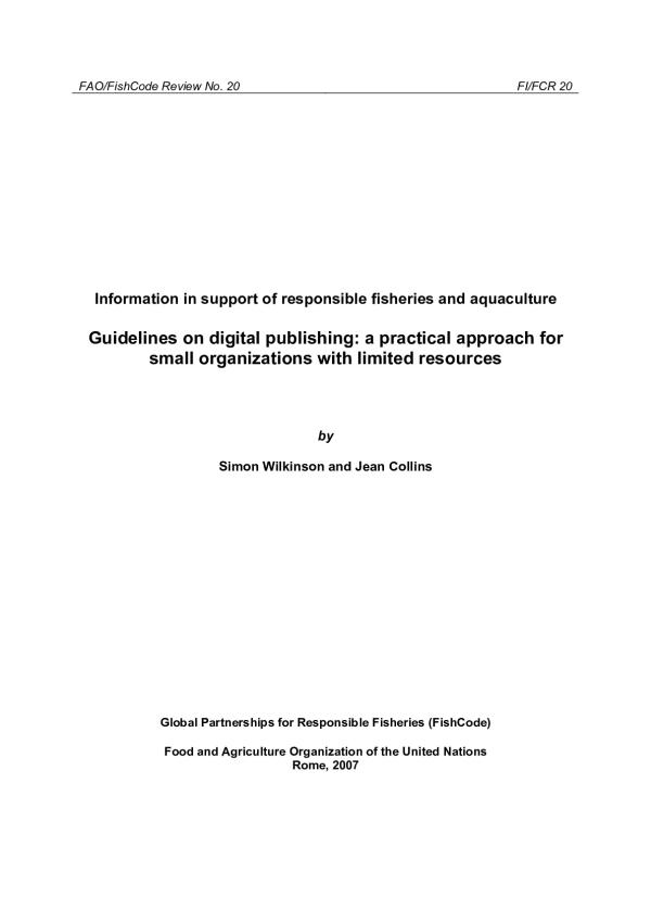 he importance of research in fisheries and aquaculture is referred to throughout the Code of Conduct for Responsible Fisheries, as is the need to disseminate and share the results of research. Stakeholders in developing countries generally are still waiting for reliable, high speed and cost-effective internet access that is widely available in the industrialised world. Once connected, users must grapple with, and make decisions about, myriad technological solutions that exist. These guidelines on digital publishing are targeted primarily at small organizations with limited resources in developing countries, in order to facilitate decision-making on how to publish and disseminate their information, with emphasis on the internet. The Guidelines are based on the years of experience of the Network of Aquaculture Centres in Asia-Pacific (NACA) and its partners. The approach is practical in orientation, covering topics including: