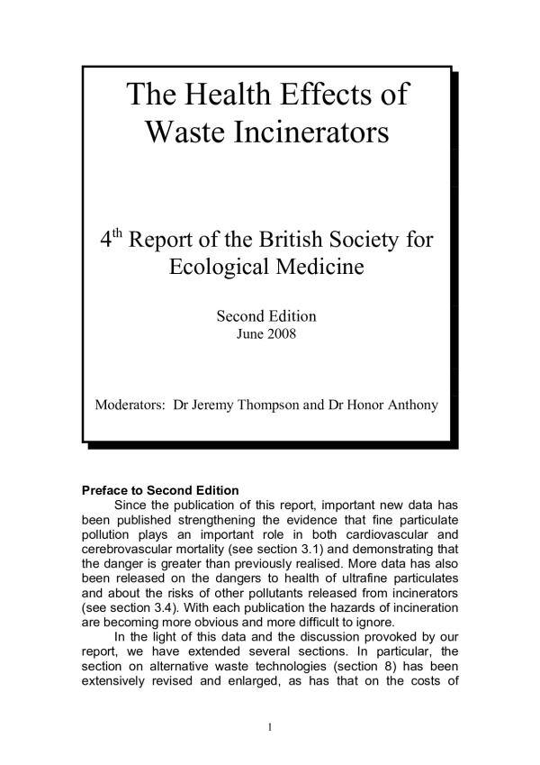 Large studies have shown higher rates of adult and childhood cancer and also birth defects around municipal waste incinerators: the results are consistent with the associations being causal. A number of smaller epidemiological studies support this interpretation and suggest that the range of illnesses produced by incinerators may be much wider.