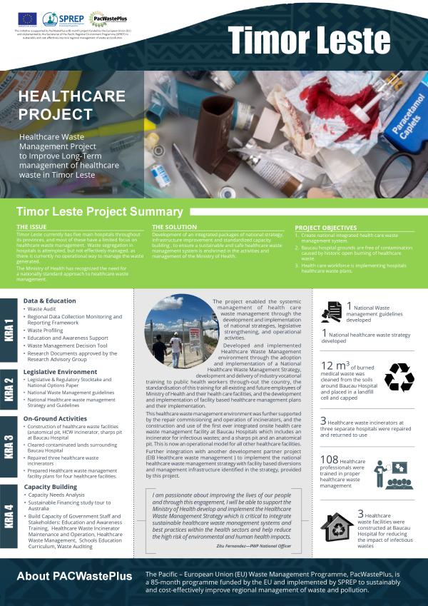 Timor-Leste currently has five main hospitals throughout its provinces, and most of these have a limited focus on healthcare waste management. Waste segregation in hospitals is attempted, but not effectively managed, as there is currently no operational way to manage the waste generated.