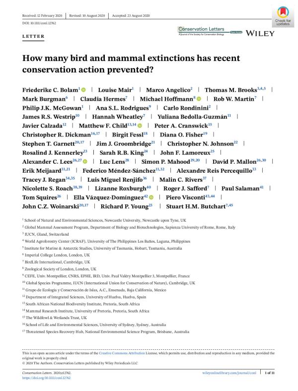To measure the degree to which this was achieved, we used expert elicitation to estimate the number of bird and mammal species whose extinctions were prevented by conservation action in 1993-2020.