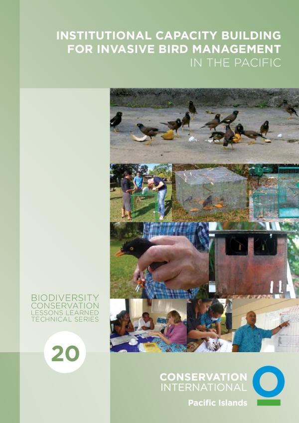 20 InstItutIonal CapaCIty BuIldIng for InvasIve BIrd ManageMent IN THE PACIFIC BIODIVERSITY CONSERVATION LESSONS LEARNED TECHNICAL SERIESInstitutional Capacity Building for Invasive Bird Management in the Pacific BIODIVERSITY CONSERVATION LESSONS LEARNED TECHNICAL SERIES Biodiversity Conservation Lessons Learned Technical Series is published by: Critical Ecosystem Partnership Fund (CEPF) and Conservation International Pacific Islands Program (CI-Pacific) PO Box 2035, Apia, Samoa T: + 685 21593 E: cipacific@conservation.org W: www.conservation.org The Critical Ecosystem Partnership Fund is a joint initiative of lâAgence Française de Développement, Conservation International, the Global Environment Facility, the Government of Japan, the MacArthur Foundation and the World Bank. A fundamental goal is to ensure civil society is engaged in biodiversity conservation. Conservation International Pacific Islands Program. 2013. Biodiversity Conservation Lessons Learned Technical Series 20: Institu