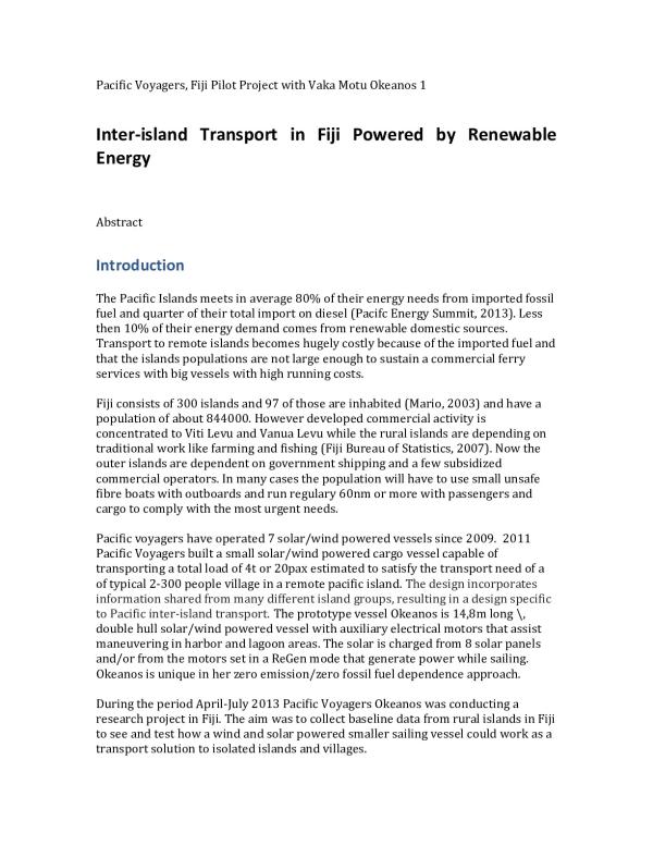 Inter-island transport - Renewable energy - Fiji