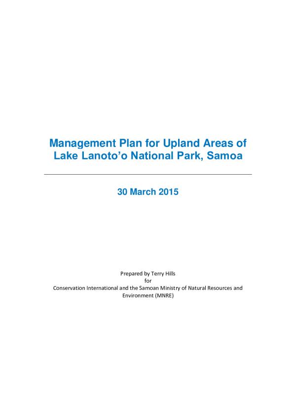 The management plan describes the priority strategies for the upland areas of the Lake Lanuto'o National Park that will best maintain and improve the key conservation values in these areas by reducing the impact of threats, including from climate change. The management planning process began in 20-24 August 2012 with the Site management planning workshop for climate resilience of Samoa's forest. This workshop involved application of the Conservation Action Planning (CAP) Process of the Open Standards for the practice of conservation.