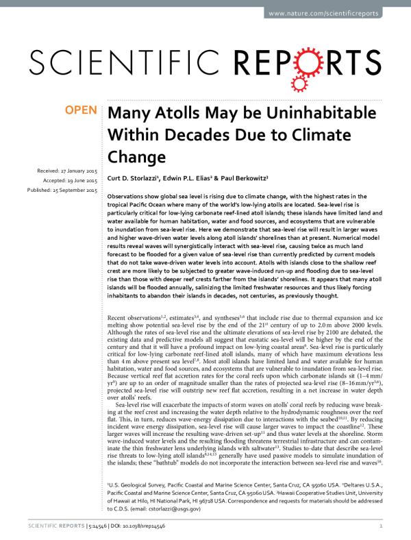 Observations show global sea level is rising due to climate change, with the highest rates in the tropical Pacific Ocean where many of the world's low-lying atolls are located. Sea-level rise is particularly critical for low-lying carbonate reef-lined atoll islands: these island have limited land and water available for human habitatio, water and food sources and ecosystems that are vulnerable to inundation from sea-level rise.