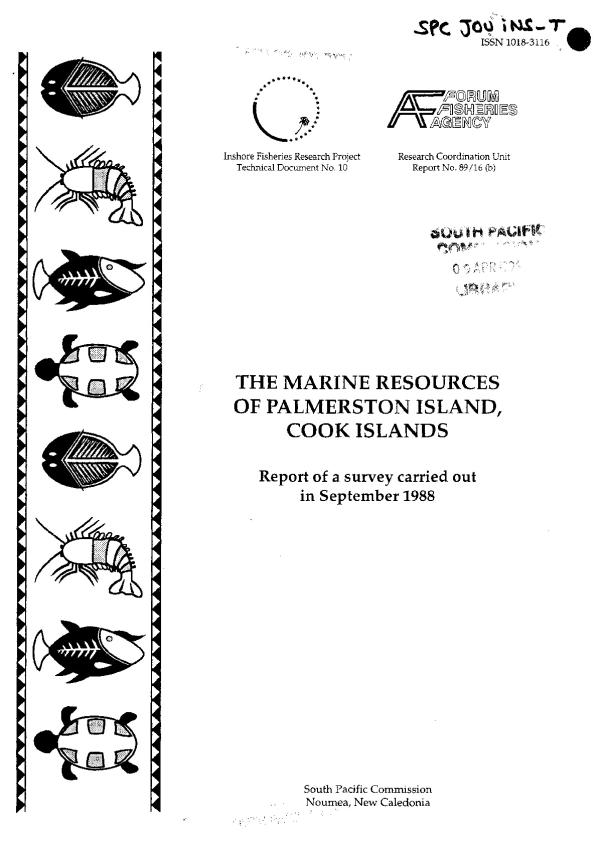 This reports presents the information gathered during a short (10-day) survey of the marine resources of Palmerston Island, Cook Islands, carried out in September 1988. The report essentially consolidates, in publishable form, the draft version of the survey results and fishery management recommendations presented to the Cook Islands Ministry of Marine Resources in early October 1988.
