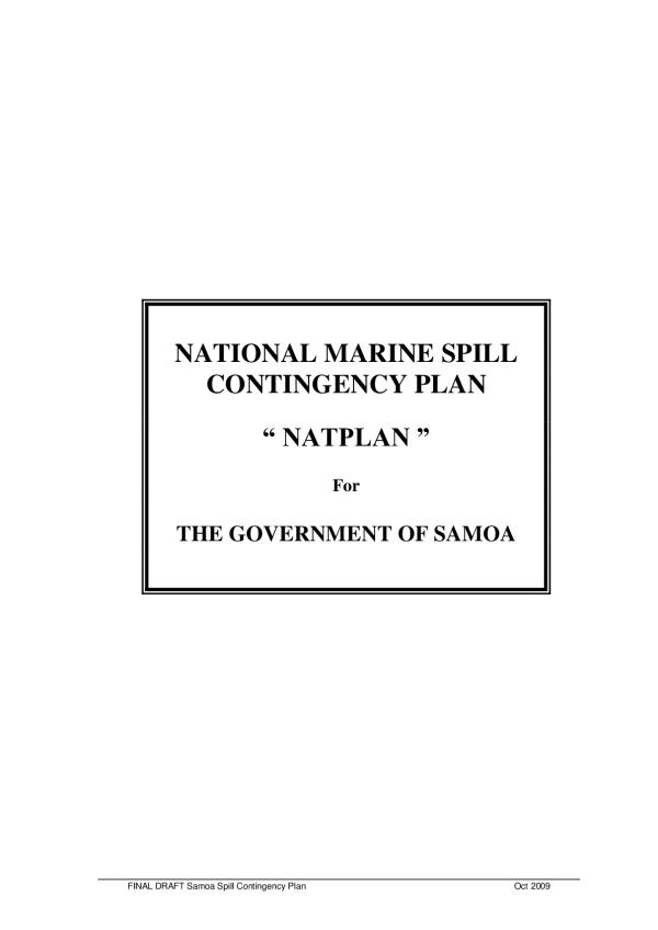 This plan meets the obligations of Samoa under the Protocol Concerning Cooperation in Combating Pollution Emergencies in the South Pacific Region (Noumea Pollution Protocol) of the Convention for the Protection of the Natural Resources and Environment of the South Pacific Region (Noumea Convention). The Noumea Convention Protocols have now been revised to produce the Oil and HNS Protocols. This also meets obligations under the International Convention on Oil Pollution Response, Preparedness and Cooperation 1990 (OPRC 90).