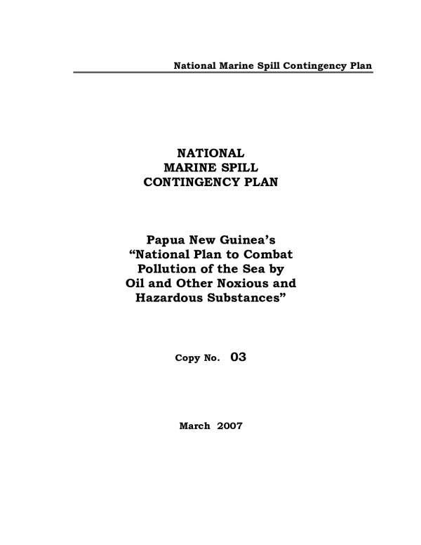 The Government of Papua New Guinea has developed this National Marine Spill Contingency Plan (NATPLAN) as part of its commitment to protecting its and our valuable coastal and marine resources from the threat of marine pollution incidents. NATPLAN has been developed to reflect the essential steps necessary to initiate, conduct and terminate an emergency spill response on, or into the navigable waters of Papua New Guinea, on the adjoining shorelines, the waters of the contiguous zone or into waters of the exclusive economic zone.