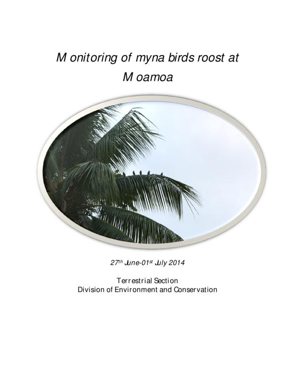 On Tuesday 24th June 2014, the terrestrial section of the Division of Environment and Conservation received a report from Sooalo Tito Alatimu, a principal officer of the Forestry Division, regarding a complaint from a resident of Vailima due to an unusual seen of myna birds at his place. According to Sooalo, the complainant was shocked seeing more than 100 myna birds in his compound on Sunday and Monday in the early hours of the morning and late evening, it is very unusual and the first scene to happen while staying at Vailima.