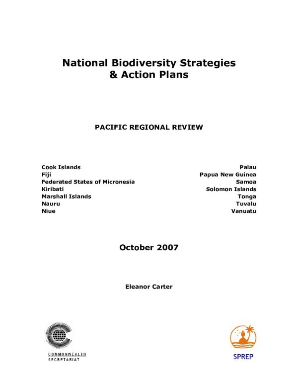 This review examines the current status of NBSAP development across fourteen South Pacific member nations, and assesses the scales of actionable planning and M&E protocols existing within these plans. The results of the review show that the status of NBSAP development and implementation in the selected Pacific member countries is varied; from some countries still awaiting funding to begin their NBSAP development process, to others that are busy undertaking implementation activities