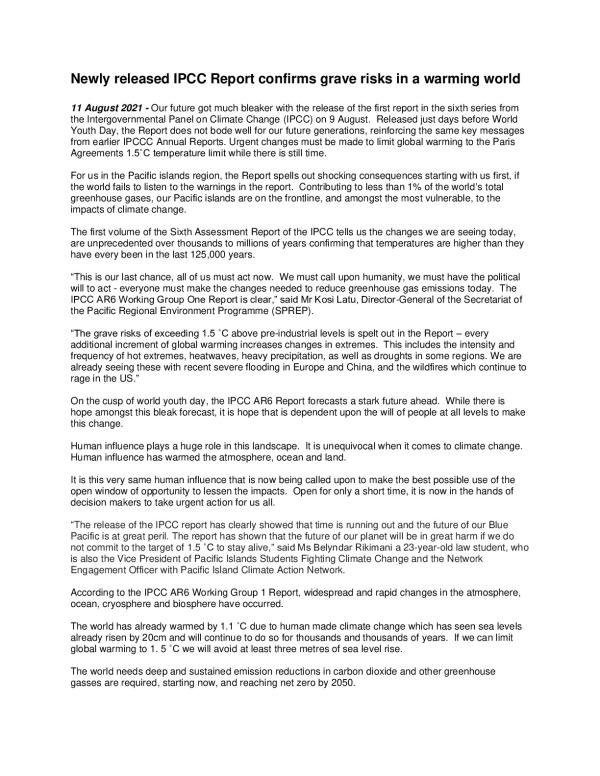 Our future got much bleaker with the release of the first report in the sixth series from Intergovernmental Panel on Climate change (IPCC) on 9 August. Released just days before the World Youth Day, the report does not bode well for our future generations, reinforcing the same key messages from earlier IPCC annual reports. Urges changes must be made to limit global warming to the Paris agreements 1.5 degree Celsius temperature limit while there is still time