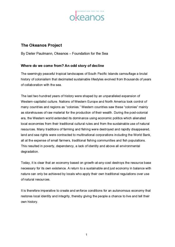 The "Okeanos Project"is born from a Pacific folktale describing Earth drifting through the universe like a blue canoe. In July 2011 Pacific Voyagers of "Te Mana o Te Moana" joined with internationally famous scientists at the Kava Bowl Ocean Summit in Honolulu. This was a historic moment, a conference gathering in traditional Pacific fashion: sitting in small groups, sharing kava root together in symbolization of friendship, honour and collaboration. The scientists shared their latest findings on the state of the ocean, and the social, economic and environmental impacts of climate change. From this meeting, we imagined the Okeanos Project (previously called 'The Blue Canoe Project') - a unique, holistic vision that collectively addresses the social and environmental challenges small island nations are facing.