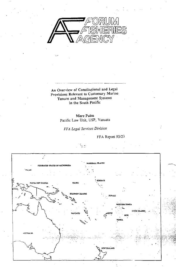 The effects of marine resource development, aggravated by the rise of population in some Pacific countries, are disturbing those elements on which life depends. Modem technology is making it possible for distant water fishing nations (DWFNs) to fish the Pacific Ocean and sometimes within the exclusive economic zones of Pacific Island countries. The coastal zones, the breeding grounds for marine life, are under pressure from overfishing, coastal run-offs and wastes dumped in the ocean. Efforts to secure sustainable development, conservation and management of the marine resources take place, firstly against a 'background of complex international, national and customary laws, and secondly against a background of plural legal systems where laws passed by a country's legislature, laws "received" during the colonial era, and customary law, all co-exist.