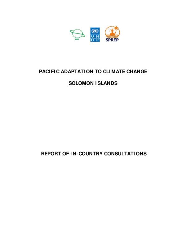 Microsoft Word - Solomon Islands Report_Revised 010507.doc PACIFIC ADAPTATION TO CLIMATE CHANGE SOLOMON ISLANDS REPORT OF IN-COUNTRY CONSULTATIONS 2 Table of Contents INTRODUCTION .........................................................................................................................................3 1.1 THE NEED FOR ADAPTATION TO CLIMATE CHANGE........................................................................3 1.2 OBJECTIVE OF PACIFIC ADAPTATION TO CLIMATE CHANGE (PACC) ...........................................4 1.3 SCOPE OF THE REPORT ..................................................................................................................5 GENERAL OVERVIEW..............................................................................................................................6 2.1 SITUATION ANALYSIS ...............................................................................................