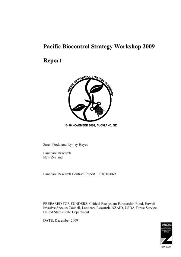 Untitled Document� � � � � � 3DFLILF�%LRFRQWURO�6WUDWHJ\�:RUNVKRS������ 5HSRUW� � � � � � � � � � � � � � � � � � 6DUDK�'RGG�DQG�/\QOH\�+D\HV� � /DQGFDUH�5HVHDUFK� 1HZ�=HDODQG� � � � /DQGFDUH�5HVHDUFK�&RQWUDFW�5HSRUW��/&��������� � � � � � � 35(3$5('�)25�)81'(56��&ULWLFDO�(FRV\VWHP�3DUWQHUVKLS�)XQG��+DZDLL� ,QYDVLYH�6SHFLHV�&RXQFLO��/DQGFDUH�5HVHDUFK��1=$,'��86'$�)RUHVW�6HUYLFH�� 8QLWHG�6WDWHV�6WDWH�'HSDUWPHQW� � '$7(��'HFHPEHU������$� � $SSURYHG�IRU�5HOHDVH�E\�� � � � � � � 0DWW�0F*ORQH� 6FLHQFH�7HDP�/HDGHU� %LRGLYHUVLW\�DQG�&RQVHUYDWLRQ� � � � � � � � � ��/DQGFDUH�5HVHDUFK�1HZ�=HDODQG�/WG������ � 7KLV�LQIRUPDWLRQ�PD\�EH�FRSLHG�DQG�GLVWULEXWHG�WR�RWKHUV�ZLWKRXW�OLPLWDWLRQ��SURYLGHG� /DQGFDUH�5HVHDU
