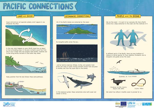 Ocean and land are not separate systems, what happens in one influences the other. In this way, what happens on every Pacific island has an impact on the surrounding ocean. In the past, nutrients would flow from land to sea to keep reefs and seagrass beds healthy. Seabirds and turtles bring marine nutrients to land when they breed.