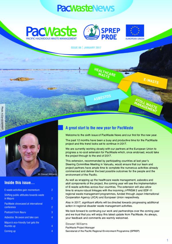 PacWaste News Issue 6 on Pacific Healthcare, e-waste, asbestos waste management and atoll waste management updates and latest events in the Pacific.