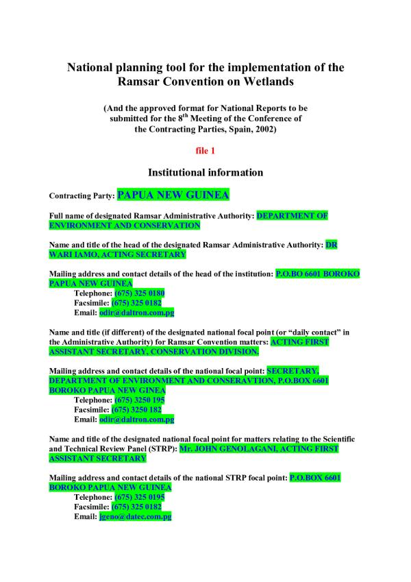 Wetlands - Convention - Papua New Guinea