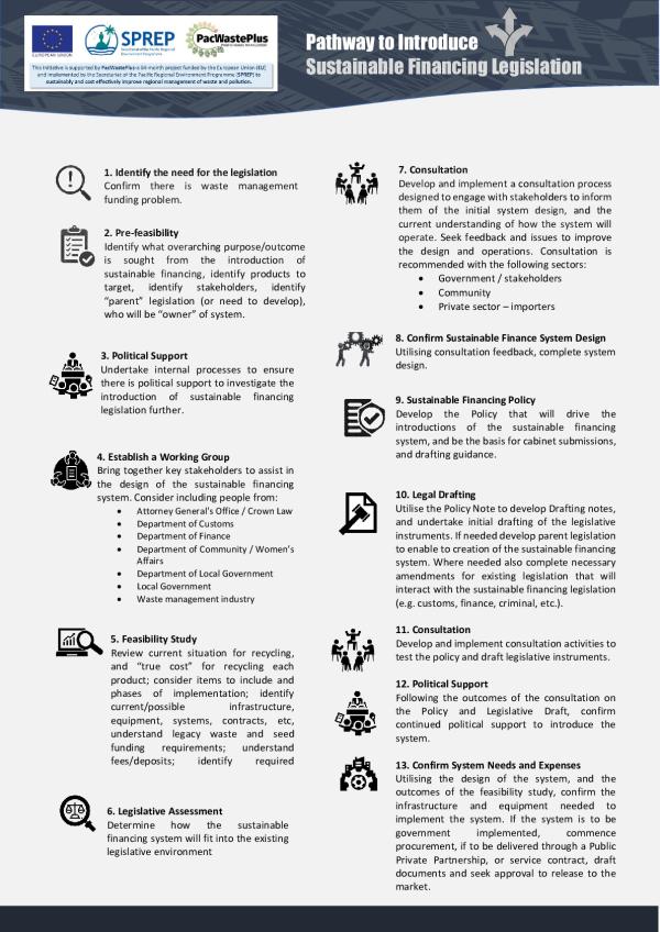 The development of a sustainable financing mechanism to assist with funding the sound management of wastes is an opportunity for countries and territories to explore, especially given the current level of donor support on waste management.