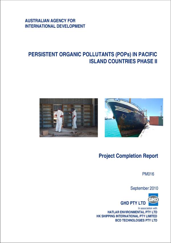 The Persistent Organic Pollutants in Pacific Island Countries (POPs in PICs), Phase II Scheduled POPs and Intractable Pesticide Disposal Project was a seven-year project to reduce the threat posed by POPs and related chemicals toward the environment and human health in Pacific Island Countries. The Project was undertaken in the Pacific Region and included 12 PICs. The Project commenced in April 2003 and was completed in June 2009, at a total cost of AUD 6.57 Mil, funded by AusAID. The Project was delivered under the aid modality of project support, by Australian Managing Contractor, GHD, in partnership with the Secretariat of the Pacific Regional Environment Programme (SPREP). The Project goal addressed country, regional and international priority issues, and is in alignment with the highest priority waste management issues in the Pacific as identified by SPREP member countries in the Waste Management Action Plan 1997-2000, and the objective of the Stockholm Convention. The mechanisms of the Basel or Waigani Convention were utilised for approvals to import the repackaged waste POPs into Australia for destruction.