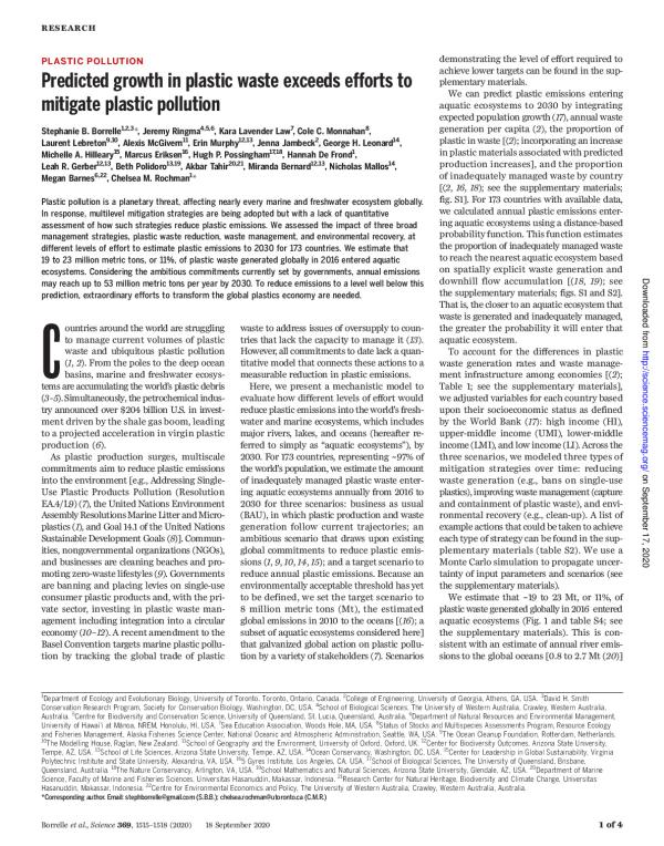 Plastic pollution is a planetary threat, affecting nearly every marine freshwater ecosystem globally, In response, multilevel mitigation strategies are being adopted but with lack of quantitative assessment of how such strategies reduce plastic emissions.