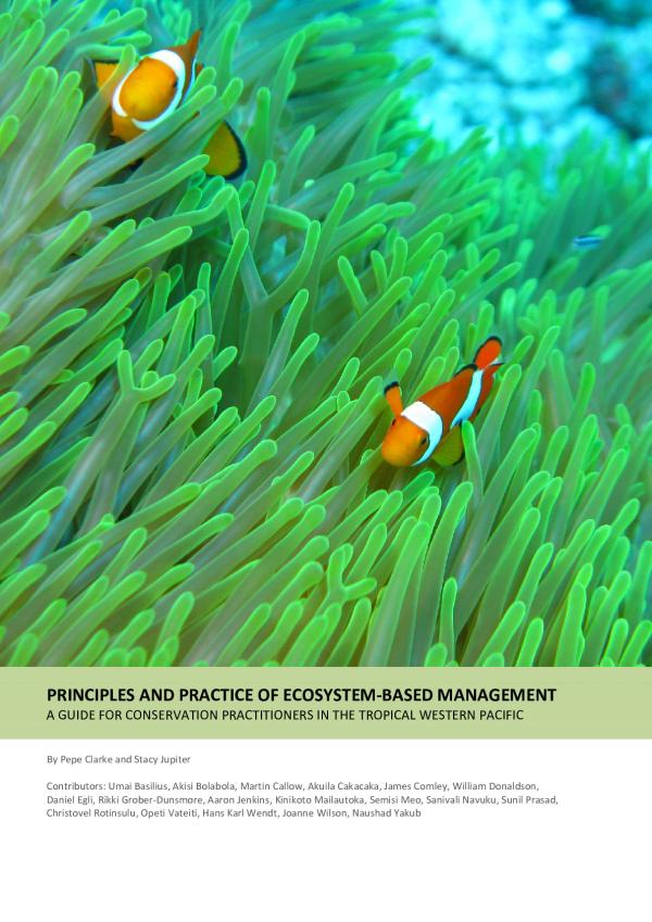 Ecosystem-based management (EBM) is an integrated approach that considers interactions between humans and the environment. The goal of EBM is to sustainably manage natural resources and biodiversity by maintaining ecosystem processes, functions and services. This guide seeks to inform and influence conservation practice in the tropical Western Pacific and to share lessons from the region with conservation practitioners around the world, particularly in developing nations where EBM approaches used in industrialised countries may not be feasible or appropriate. EBM can be applied at a range of scales and context at any stage in the planning process for site-based projects to national policies and programmes.