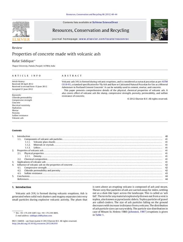 Volcanic ash(VA) id formed during volcanic eruptions and is considered as natural pozzolan as per ASTMC618-93, a standard specific action fro 'Fly ash and raw or calcinated natural pozzolan for use as a mineral. Admixture in Portland cement concrete. It can be suitably used in cement, mortar and concrete. This paper presents comprehensive details of the physical, chemical properties of volcanic ash. It also covers effect of volcanic ash slump. compressive strength, porosity, permeability and sulfate resistance of concrete.