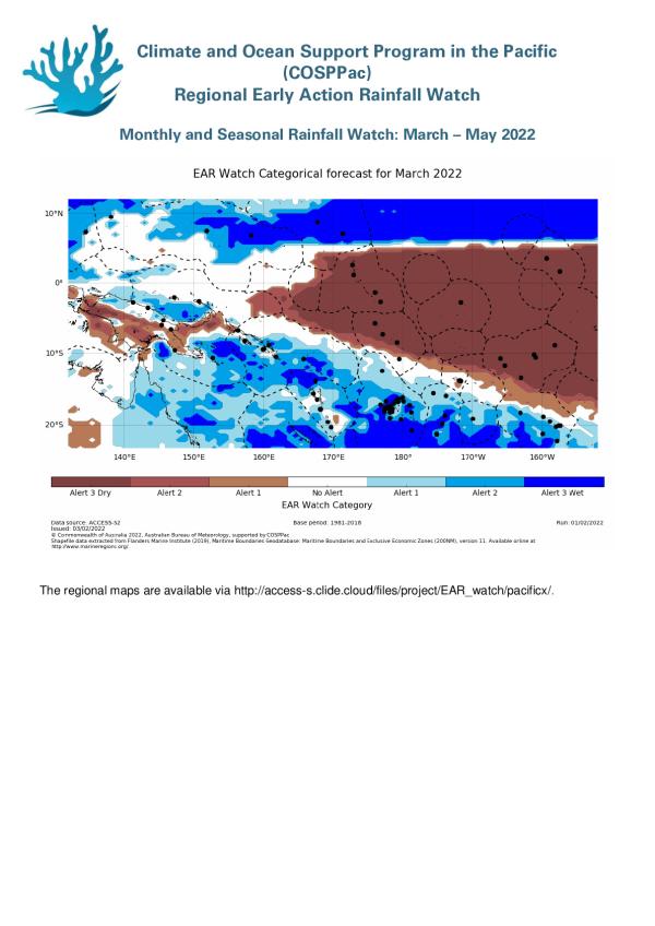 Three month total rainfall is typically used for monitoring grasslands, shallow rooted plants and small water body (e.g. small water tanks, streams) moisture deficits. Allow for uncertainity associated with island size, topography, geology and soil type. Information provided gives an indication of predicted total rainfall over the next three months, not how intense the rain may be in anyone event, nor how it may vary from month to month.