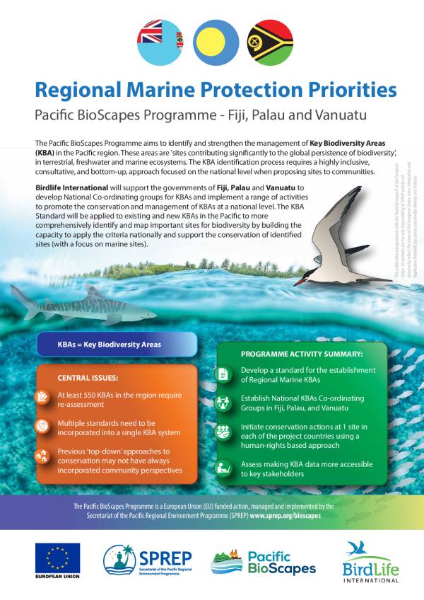 The Pacific BioScapes Programme aims to identify and strengthen the management of Key Biodiversity Areas (KBA) in the Pacific region. These areas are 'sites contributing significantly to the global persistence of biodiversity’, in terrestrial, freshwater and marine ecosystems. The KBA identification process requires a highly inclusive, consultative, and bottom-up, approach focused on the national level when proposing sites to communities.