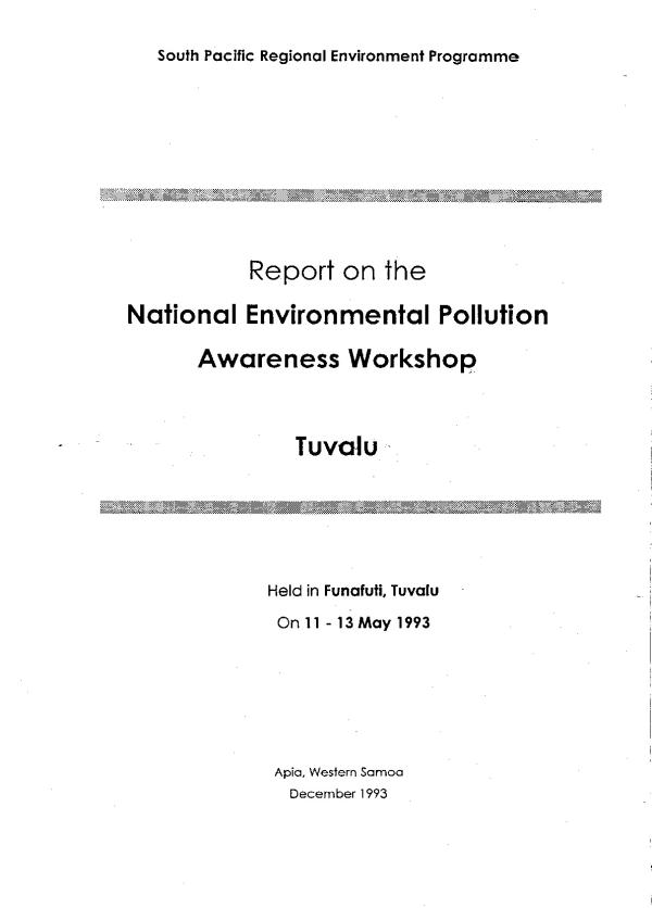 The National Environment Pollution Awareness Workshop conducted at Funafuti in Tuvalu on 11 - 13 May 1993 came about as a result of the assembling of environmental priorities within countries of the South Pacific under the National Environment Management Strategy (NEMS) Programme. The identification of the lack of proper waste management and pollution control measures were regarded as priorities that had to be addressed.