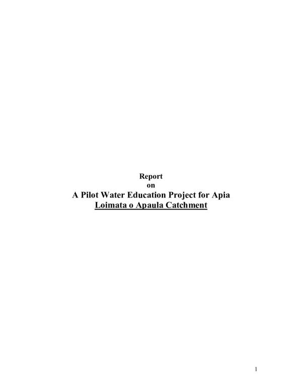 This report records and presents an account of the Pilot Water Education Project for Samoa executed from the October 2003 to January 2004. Freshwater is not only a resource for human use but also provides important habitats for many native plant and animal species. Hence, water cannot be isolated but must be seen as one element in a broader ecosystem.
