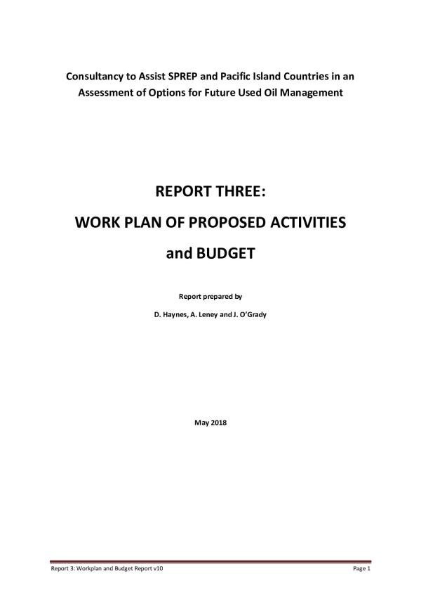 Pacific used oil reuse options - Waste Management and Pollution Control